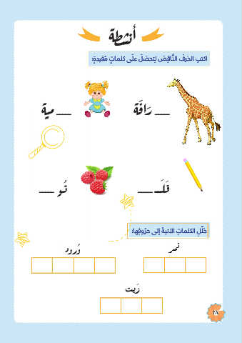 ة ن أ ش �ط ا � � :ٍةديفم ٍ تاملك ىَلع َ لصحتِل ص ِ قاَّنلا َ فرحلا بتكا َ ِ َ َ ُ ة ة ن َ َ َي ��م ـــــ ��ار ـــــ ـــــ وُ ـــــ ــََ لق ت :اه ِ فورح ىلإ َةيتلآا ِ تاملكلا لّلح َ ُ ِ و دو رُ ز تيَ 28