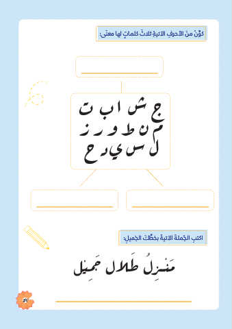 :ىَنعم اهل ٍ تاملك َ ثلاث ِةيتلآا ِ فرحلأا َ نم ْ نوك ِّ ش ة � � ا س ب ح ب ن ر ر و ط ن م ح د � س ل ي :ليمجلا كطخب َةيتلآا َةلمجلا بتكا َ ِّ َ ُ ِ ِ ليِ َ َ ُ ز ـنم ج للط لِـَْ ْ 57