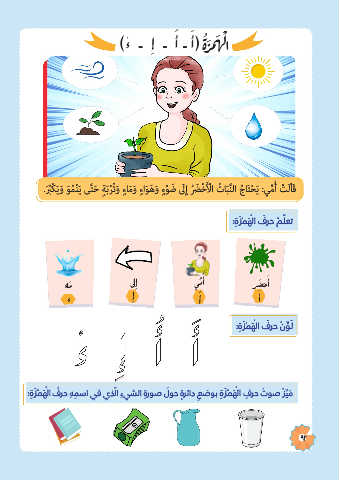 .بْكيو ومْني ىَّتح ٍةبرُتو ءامو ءاوَهو ءو َ ض َلِإ َ ضرْخ ْلأا ُ تابَّنلا جاَتحي :يمأ ْ تَلْاَق