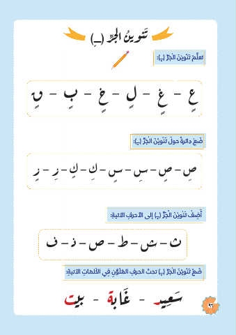 :ِةيتلآا ِ تامل َكلا ي ِ ف نوَلملا ِ فرحلا َ تحت )ـٍــ( رجْلا َ نيوْنَت ع َ ض