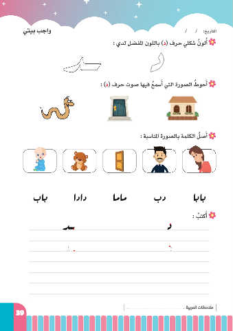 يتيب بجاو / / :خيراتلا : يدل لضفلما نوللاب )د( فرح ليكش ُنولأ ُ َ : )د( فرح توص اهيف ُعمسأ يتلا ةروصلا ُطوحأ َ : ةبسانلما ةروصلاب ةملكلا ُلصأ َ باب اداد امام بد اباب : بتكأ َ ُ دـ د : ةيبرملا تاظحلام 39