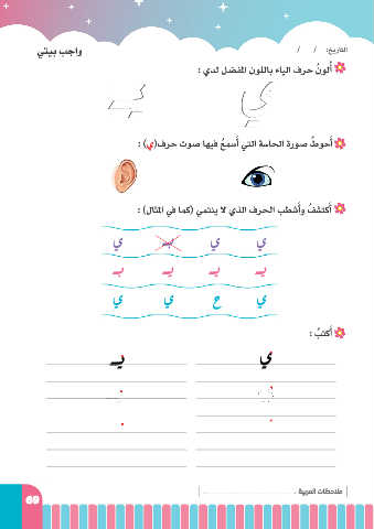 يتيب بجاو / / :خيراتلا : يدل لضفلما نوللاب ءايلا فرح ُنولأ ُ ـي ي َ : )ي(فرح توص اهيف ُعمسأ يتلا ةساحلا ةروص ُطوحأ َ َ : )لاثلما في ماك( يمتني لا يذلا فرحلا بطشأو ُفشتكأ َ ي ـب ي ي ـب ـي ـي ـي ي ي ح ي : بتكأ َ ُ ـي ي : ةيبرملا تاظحلام 69