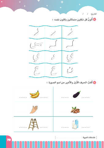 / / :خيراتلا : هسفن نوللاب ينلثماتم ينلكش لك ُنولأ ُ ز ر ز س ـل ـل ي د ي ح ح ن : ةروصلا مسا نم يرخلأاو لولأا فرحلا بتكأ َ ُ : ةيبرملا تاظحلام 79