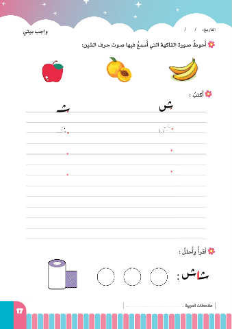 يتيب بجاو / / :خيراتلا َ :ينشلا فرح توص اهيف ُعمسأ يتلا ةهكافلا ةروص ُطوحأ َ : بتكأ َ ُ ـش ش ُ ُ َ : ُللحأو أرقأ :ش اش : ةيبرملا تاظحلام 17