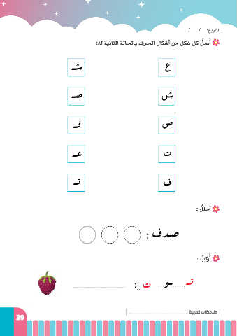 / / :خيراتلا :هل ةيناثلا ةلاحلاب فرحلا لاكشأ نم لكش لك ُلصأ َ ـش ع ـص ش ـف ص ـع ت ـت ف : ُللحأ ُ : فدص : بكرأ ُ ُ : ت وـ ـت : ةيبرملا تاظحلام 39