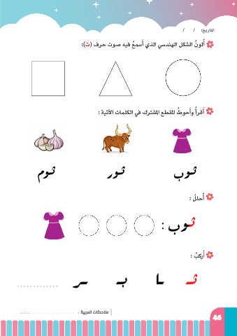 / / :خيراتلا َ :)ث( فرح توص هيف ُعمسأ يذلا سيدنهلا لكشلا ُنولأ ُ َ ُ َ : ةيتلآا تمالكلا في كترشلما عطقلما ُطوحأو أرقأ موث ر وث ب وث : ُللحأ ُ : وث ب : بكرأ ُ ُ رـ ـب اـ ـث : ةيبرملا تاظحلام 46