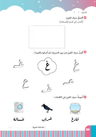 / / :خيراتلا :ينغلا فرح ُ قصلأ َ َ )تاقصللما مسق لىإ بهذأ( ُ َ : ةميغلاب اهلصأ مث فورحلا ينب نم ينغلا فرح ُنولأ ُ ـغ غ غ ع ـع ـغ : تمالكلا في ينغلا فرح ُطوحأ َ ةلاـــغ با رغ غ راف : ةيبرملا تاظحلام 54