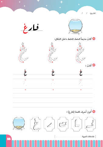 / / :خيراتلا غراف :لكشلا لخاد طقنلما طخلا ًاعبتم بتكأ َ ُ : بتكأ َ ُ غ غ غ َ : )غراف( ةملك فرحأ نولأ ُ غ ر ت اـ ـف : ةيبرملا تاظحلام 55