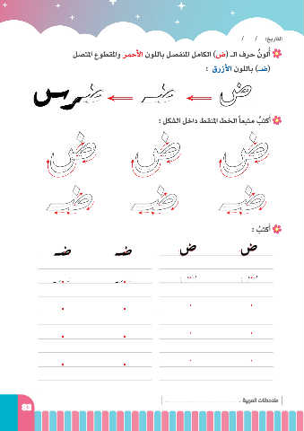 / / :خيراتلا لصتلما عوطقلماو رمحلأا نوللاب لصفنلما لماكلا )ض( ـلا فرح ُنولأ ُ : قرزلأا نوللاب )ـض( سرض ـض : لكشلا لخاد طقنلما طخلا ًاعبتم بتكأ َ ُ : بتكأ َ ُ ـض ـض ض ض : ةيبرملا تاظحلام 83