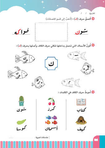 / / :خيراتلا َ )تاقصللما مسق لىإ بهذأ( : )ك( فرح ُ قصلأ َ ُ هك ا وف ك وش : )ك( فرحب اهلصأو فاكلا فرح ليكش اهلخادب لمحت يتلا كماسلأا ُنولأ ُ ـس ك ك ش ك م ـك : تمالكلا في فاكلا فرح ُطوحأ َ ك وش ز رك باتك اس وك فهك : ةيبرملا تاظحلام 86