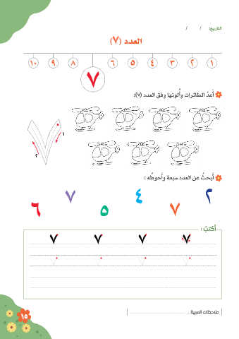 / / :خيراتلا )7( ددعلا ُ :)7( ددعلا قفو اهنولأو تارئاطلا ُدعأ َ 1 2 َ : ه ُ طوحأو ةعبس ددعلا نع ُ ثحبأ َ َ : ُ بتكأ : ةيبرملا تاظحلام 15