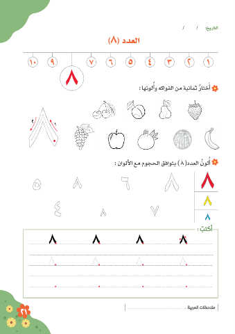 / / :خيراتلا )8( ددعلا ُ : اهنولأو هكاوفلا نم ةيناثم راتخأ َ ُ 2 1 : ناوللأا عم موجحلا قفاوتب ) 8 (ددعلا ُ نولأ ُ َ : ُ بتكأ : ةيبرملا تاظحلام 21