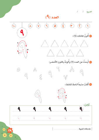 / / :خيراتلا )9( ددعلا : )9( تاثلثلما ُ نولأ ُ 2 3 1 ُ :ضرخلأا نوللاب ُهنولأو )9( ددعلا نع ُ ثحبأ َ َ )يرغصلا لىإ يربكلا نم( ًايلزانت دادعلأا بتكأ ُ : طقنلما طخلا ًاعبتم بتكأ َ ُ 2 3 1 : ُ بتكأ َ 2 3 1 : ةيبرملا تاظحلام 29