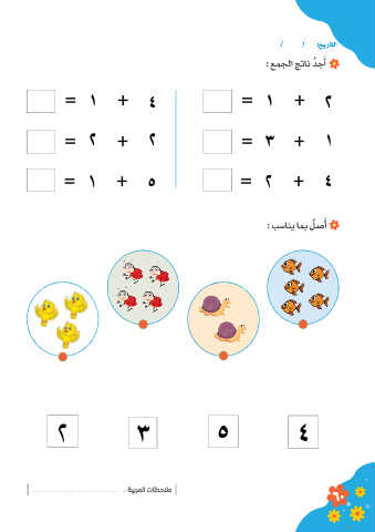 / / :خيراتلا : عمجلا جتان ُدجأ َ = 1 + 4 = 1 + 2 = 2 + 2 = 3 + 1 = 1 + 5 = ٢ + 4 : بساني ابم ُلصأ َ 3 5 4 : ةيبرملا تاظحلام 60