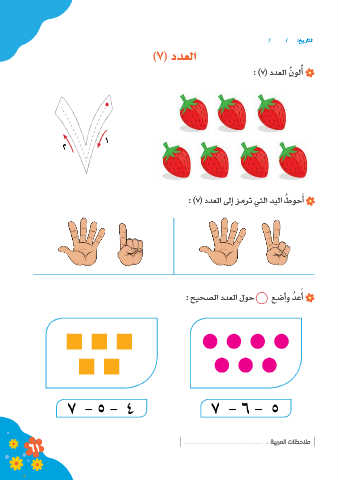 / / :خيراتلا )7( ددعلا : )7( ددعلا ُنولأ ُ 1 2 : )7( ددعلا لىإ زمرت يتلا ديلا ُطوحأ َ : حيحصلا ددعلا لوح عضأو ُدعأ َ 7 - 5 - 4 7 - 6 - 5 : ةيبرملا تاظحلام 61