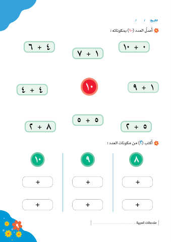 / / :خيراتلا : هتانوكبم )10( ددعلا ُلصأ َ 6 + 4 10 + 0 7 + 1 4 + 4 9 + 1 5 + 5 2 + 8 2 + 5 : ددعلا تانوكم نم )2( بتكأ َ 10 9 8 + + + + + + : ةيبرملا تاظحلام 9
