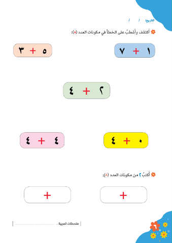 / / :خيراتلا َ :)8( ددعلا تانوكم في أطخلا لىع بطشأو فشتكأ َ ُ 3 + 5 7 + 1 4 + 4 + 4 4 + 0 :)8( ددعلا تانوكم نم بتكأ َ 2 ُ + + : ةيبرملا تاظحلام 6